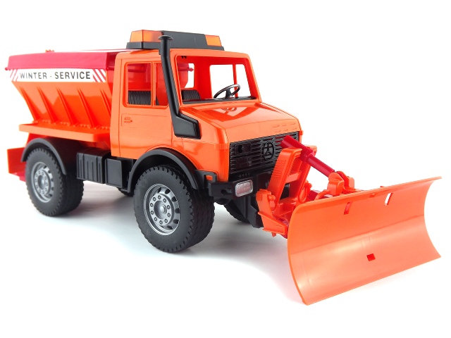 BRUDER 2572 – Mercedes Unimog pro zimní práce s radlicí – sypač.