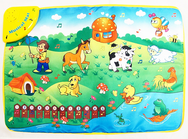 Podložka s piánkem a zvířátky je atraktivní hračka pro menší děti. Když dítě stlačí obrázek na podložce, spustí se charakteristický zvuk daného zvířátka nebo piánka. Kromě stupnice obsahuje také zvuky a melodie. Hračka má rozměry 72x 50cm . Díky rozměrům může dítě hrát nejen rukama, ale i ve stoje nohama. To dělá koberec ještě více atraktivní a kromě zábavy také dítě donutí se hýbat.
