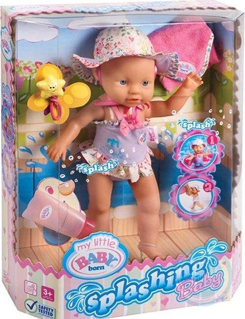 V herní sestavě My Little Baby Born "Funny Splashes" obsahuje panenku v lesklém letním oblečení, ručník, hvězdnou hračku a zkumavku. Tato nádherná panenka bude potěšit vaše dítě na první pohled! Koneckonců můžete hrát s ním nejen v místnosti, ale také v koupelně, na ulici, na řece, na rybníku. Faktem je, že když je panenka spuštěna do vody, začne tleskat rukama po vodě a radostně se rozstříká. Pokud si panenku Baby Born položíte nohama na zem a podpíráte ruce a vedete vpřed, začne se chodit. Panenka je oblečená v uzavřených plavkách s volánkem a panamou. Souprava má také ručník, na kterém může panenka sedět nebo ležet, krém, který zabraňuje spálení slunce, stejně jako okouzlující hračka, která je vyrobena ve formě hvězdice.