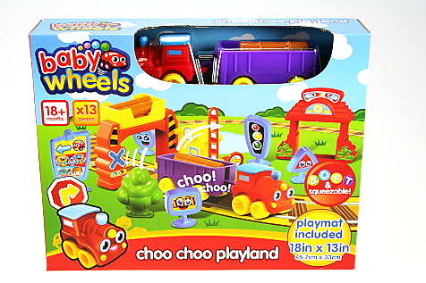 Vlaková souprava pro nejmenší. Vlaková souprava pro nejmenší o rozměrech dráhy cca 45,7 cm X 33 cm s vláčkem a vagonkem o velikosti cca 17 cm a doplňky - semafor,značky,stromky.Rozměr balení cca 29 cm X 22 cm X 7 cm.Věk 18 měs