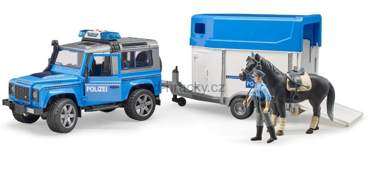 Bruder 2588 - Land rover, policie s přepravníkem figurkou a koněm