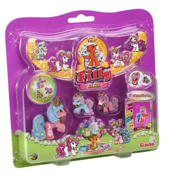 Filly Elves - mají krásné korunky a náramky nebo náhrdelníky s barevnými křišťály Swarovski. Jejich ocasy zdobí nádherné kytičky nebo lístečky. Vzácná Filly, princezna Jewel má na své čelence kouzelný kámen, který mění barvu podle její nálady.