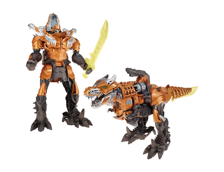 Skvěle zpracovaná figurka Mega Dinobot Grimlock nadchne každého příznivce oblíbených Transformers. Chompand Stomp Grimlock je obří robot s mocným mečem, který je připraven porazit každého protivníka. V jediném kroku se dokáže přeměnit na dinosaura s mocnou klapající čelistí a svítícíma očima. Užijte si neopakovatelnou zábavu s figurkami Transformers!