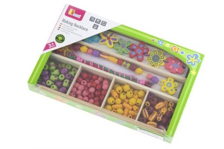 Dřevěná sada korálků. Rozměry balení cca 25 x 15,5 x 3,5 cm. Věk 3+