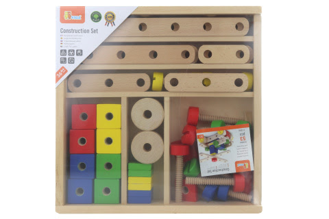 Dřevěná stavebnice konstruktér. Obsahuje 53 dílků a obrázkovou brožuru s návody na stavění. Rozměry balení cca 31 x 31 x 5,5 cm. Věk 3+